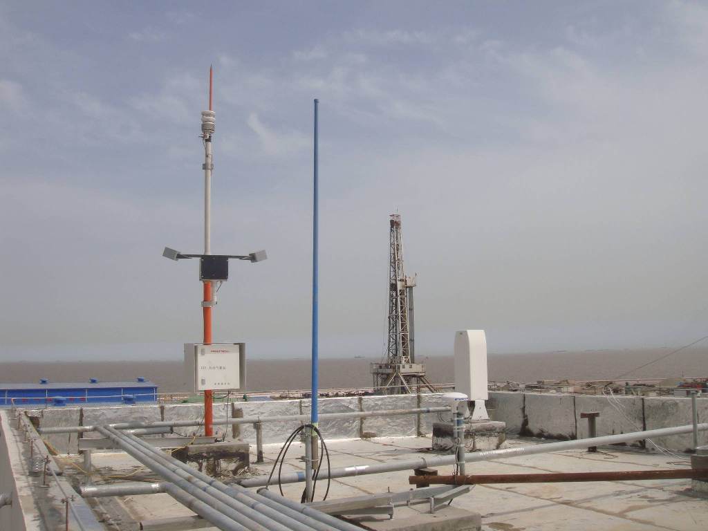 2010年11月,經與中石油某油田相關部門多次協商和相關論證,最終確定在三號人工島、鉆井平臺上建設1個囊括溫度、濕度、氣壓、風向、風速、能見度和雨量的六要素免維護氣象站和一個可監測云高,云量,垂直能見度的云高儀,實現對冀東近海的有效觀測,實現部門與企業觀測資源的共享。新建成的自動氣象站每1分鐘向服務器傳輸一次資料,業務人員能隨時掌握海洋實況,可以實現對海洋預報的及時訂正,大大提高海洋天氣預報的準確率。